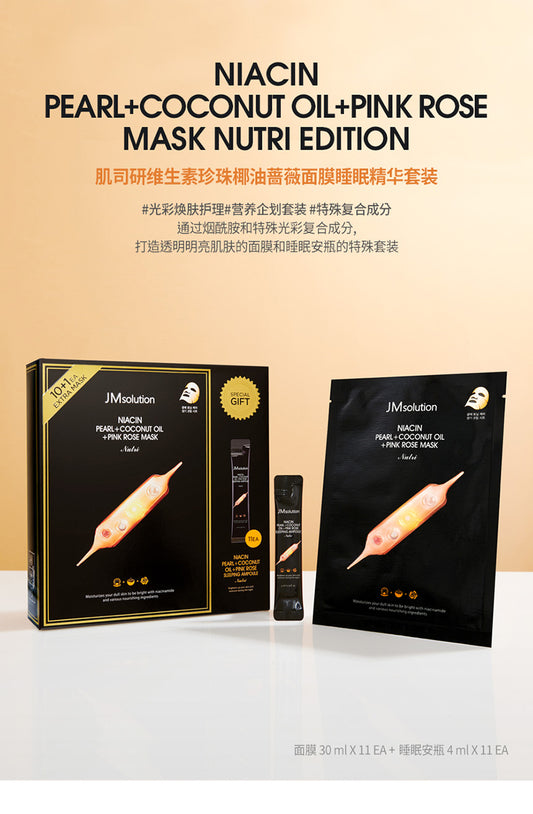 JM SOLUTION Niacin Pearl + Coconut Oil + Pink Rose Mask Nutri Edition (11pcs Mask and 11pc Sleeping Amouple)